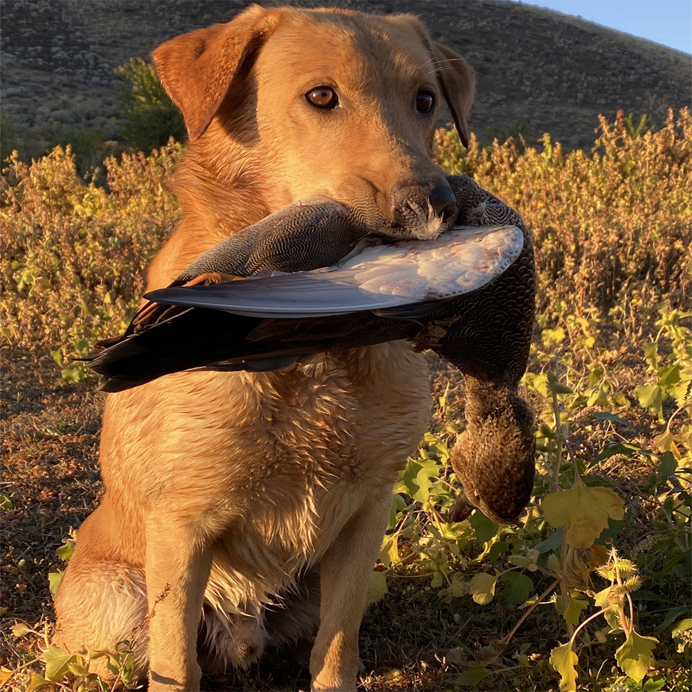 At 65 pounds, Cash is just about the perfect size, and he is a great dog in many respects. He's an excellent waterfowl dog, having hunted ducks and geese in Colorado, Mississippi, Nebraska, and Canada, but he's also a terrific upland dog. Cash is a hammer on pheasants, blue grouse, quail, and chukar. Cash is a very handsome male and has an engaging personality. He is a superb all-around companion dog and gun dog. OFA "Good" on hips and "Normal" on elbows, EIC and CNM "clear". CASH STUD FEE: $1,500