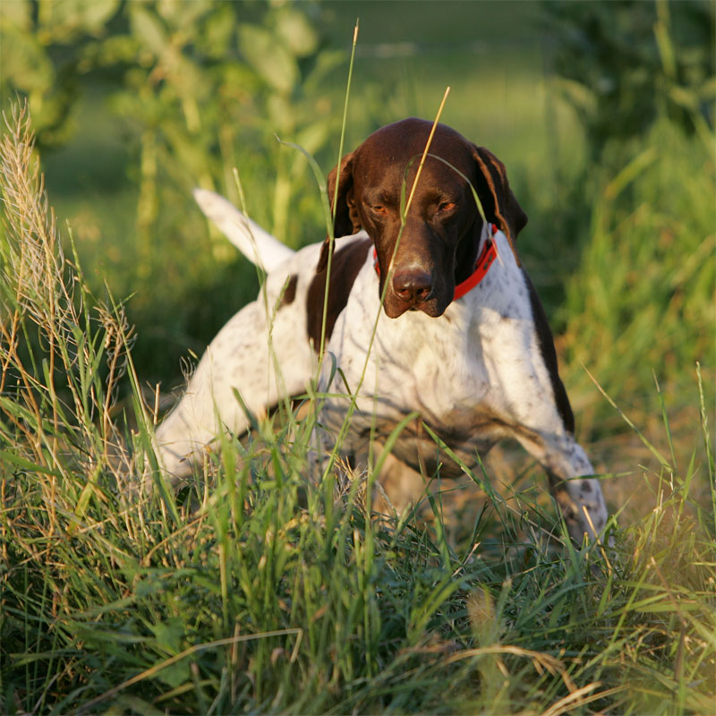 Chance is a really cool dog! If you need a GSP stud dog, Chance is a good choice. At 60 pounds, he is a good-sized dog with excellent conformation. Chance points beautifully and has a great nose and strong prey drive. Chance likes to retrieve and will bring birds to hand. Chance has a great attitude and is easy to have around in the house. He is white and liver colored with a liver mask. He's a fun dog to hunt on pheasant, chukar, grouse, and partridge. CHANCE STUD FEE: $1,500